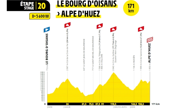 - Stage 20 (Mountain) – Sat, July 25: Le Bourg d’Oisans > Alpe d’Huez – 171 km